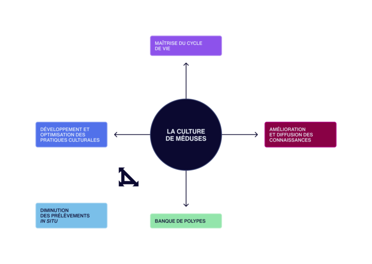 Les objectifs du LabCom JPA sont de parvenir à cultiver des espèces de méduses pour lesquelles le cycle de vie en milieu contrôlé n’est pas encore maitrisé, de développer des outils et des protocoles pour faciliter les pratiques culturales, de créer une banque de référence de polypes, et d’améliorer et diffuser les connaissances (Figure 1). Les applications de ce projet permettront de réduire le nombre de prélèvements en milieu naturel et de mieux comprendre les paramètres induisant leurs proliférations pour proposer in fine des mesures de gestion et/ou de prévention de ces épisodes.